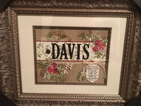 This name frame is for my daughter. She is a minimalist and I tried my best. She also requested black and white. The ribbon is old typewriter ribbon from her great grandparents typewriter that was given to her by her grandmother.